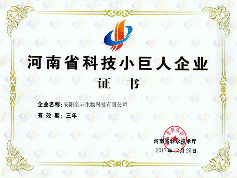 2017年度榮獲“河南省科技小巨人企業(yè)”