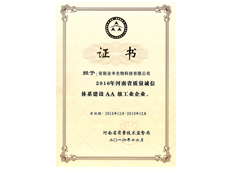榮獲2016年-2019年“省質(zhì)量誠信2A企業(yè)證書”