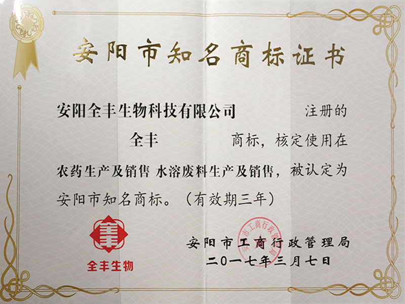2017年度榮獲”安陽市知名商標品牌全豐“