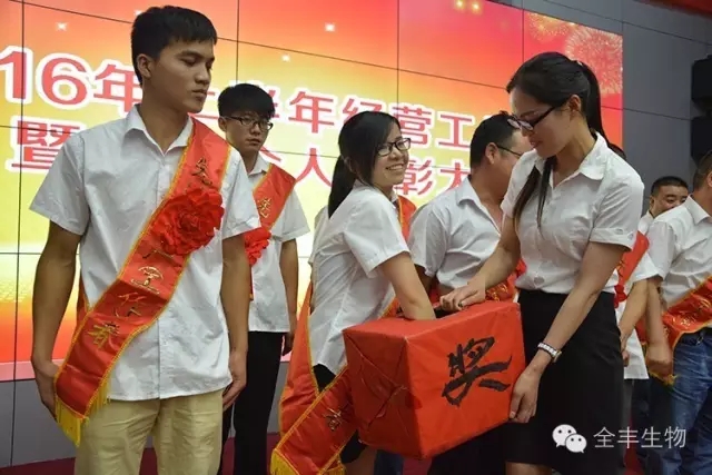 全豐集團副總經(jīng)理、研發(fā)中心主任徐雪松向模范頒獎,表示祝賀