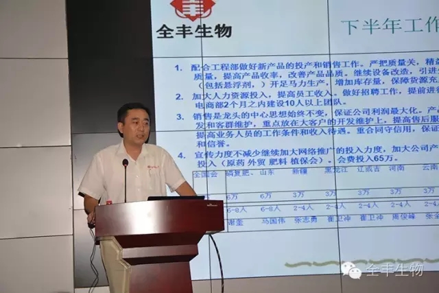 總結(jié)經(jīng)驗,發(fā)現(xiàn)問題,解決困難,展望未來。為了更好的服務廣大客戶和廣大的種植者,踐行“全心服務,豐收萬家的”的不懈追求。2016年7月6日在全豐集團新廠區(qū)的多功能報告廳,舉行了為期一天的專家技術(shù)講座和經(jīng)營工作匯報。