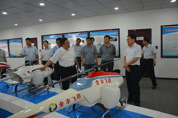 副市長(zhǎng)陳志偉一行到公司年產(chǎn)3000架植保無人機(jī)生產(chǎn)基地現(xiàn)場(chǎng),了解工程進(jìn)展情況,并參觀了全豐航空植保產(chǎn)品展廳及無人機(jī)裝配車間,深入了解產(chǎn)品的技術(shù)裝備、生產(chǎn)規(guī)模、市場(chǎng)銷售及服務(wù)等一系列情況,公司董事長(zhǎng)王志國(guó)做了詳細(xì)說明和講解,并介紹了全豐航空植保發(fā)展歷程、無人機(jī)產(chǎn)品類型及服務(wù)模式。
