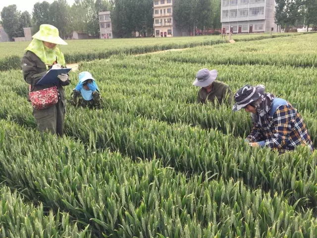 研討會結(jié)束后,各組專家及團隊一同前往安陽縣瓦店鄉(xiāng)進行田間現(xiàn)場培訓,培訓合格后,調(diào)查人員分成四組,分赴安陽縣、湯陰縣、內(nèi)黃縣、林州市對小麥統(tǒng)防統(tǒng)治后的效果進行調(diào)查。
