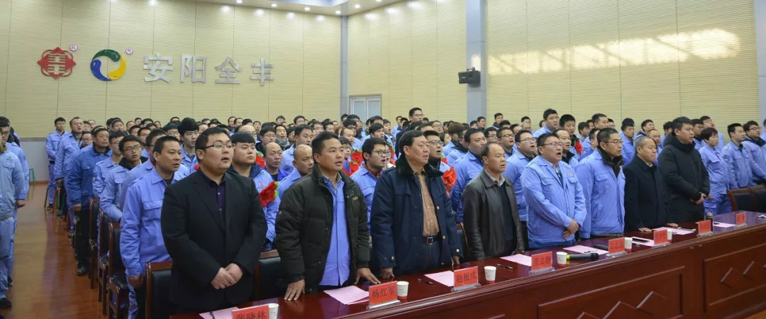 冬日的暖陽照在全豐干凈整潔的道路上,自信歡樂的笑容洋溢在全豐人的臉上。2018年2月9日上午八點半,伴隨著《全豐之歌》的齊聲高唱,全豐公司2017年度總結(jié)表彰暨聯(lián)歡會隆重召開。公司董事長、總經(jīng)理王志國及其他董事會、監(jiān)事會成員,各分公司、部門負責人以及員工代表參加了會議。