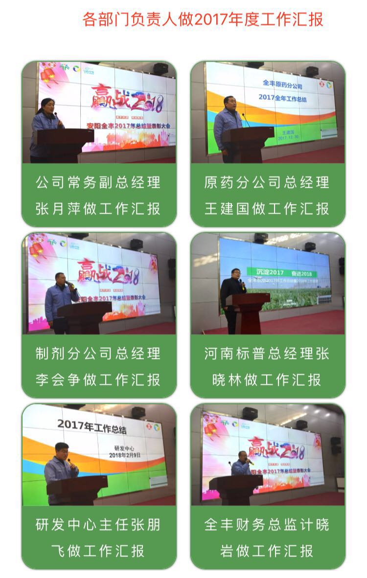 會上各部門負責人就2017年工作進行了認真總結(jié),并提出2018年工作規(guī)劃和目標,公司董事長、總經(jīng)理王志國做了公司2017年工作報告。王總講到,過去的2017年在所有全豐人的共同努力下,公司取得了一定的工作業(yè)績,成立了院士工作站,被國家農(nóng)業(yè)部確定為國內(nèi)一家航空植保重 點實驗室,并獲得全國五一勞動獎狀。安陽全豐已初步完成農(nóng)業(yè)產(chǎn)業(yè)化布局。依托現(xiàn)有原藥和制劑業(yè)務(wù)板塊,全豐航空和標普農(nóng)業(yè)立足智慧農(nóng)業(yè)五大模塊持續(xù)發(fā)力,力爭做國內(nèi)行業(yè)智慧農(nóng)業(yè)服務(wù)商,并談到全豐未來三至五年的發(fā)展規(guī)劃。