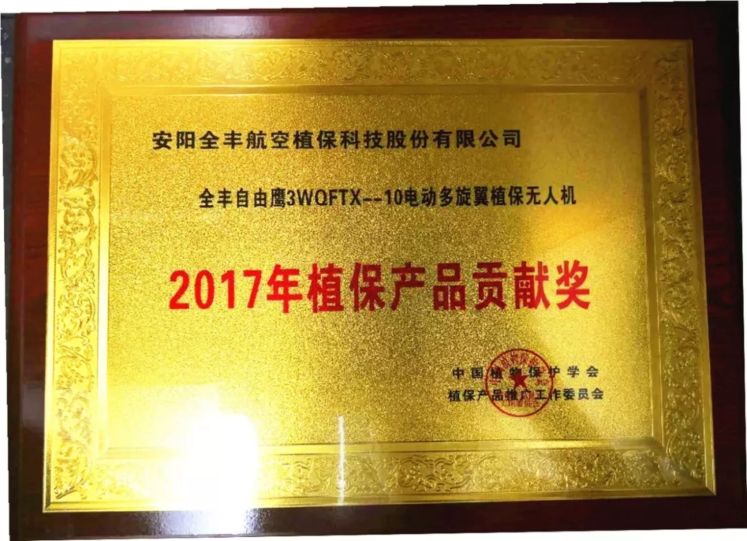“植保產(chǎn)品貢獻獎”是由中國植保學(xué)會植保產(chǎn)品推廣委員會主辦,以推廣優(yōu)質(zhì)產(chǎn)品、表彰優(yōu)秀個人為目的,從2013年開始已經(jīng)連續(xù)成功主辦了5屆。在本屆評選活動中,安陽全豐航空兩款無人機上榜,這是對全豐航空促進農(nóng)業(yè)機械化進程、確保土壤健康和農(nóng)藥零增長做出貢獻的肯定。