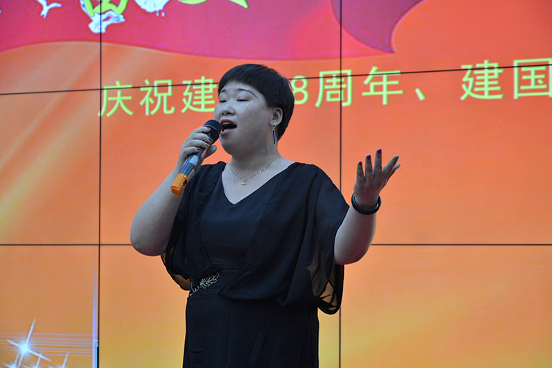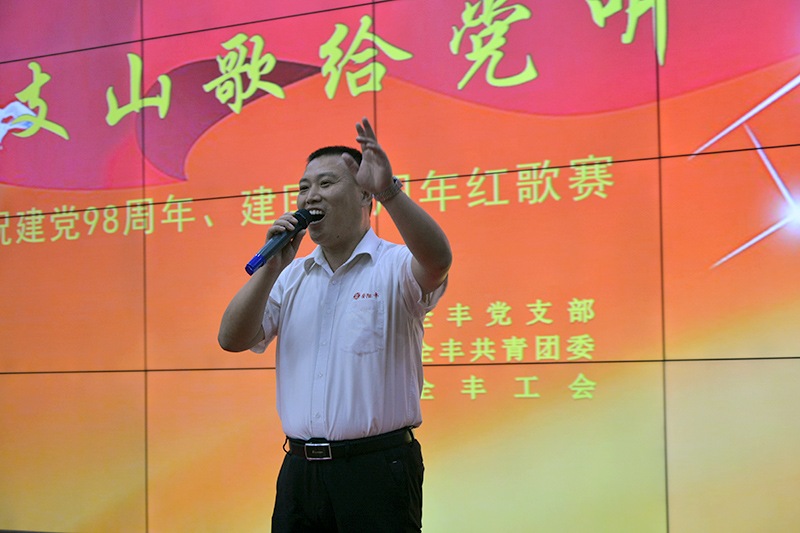 總結(jié)表彰會結(jié)束后,在全體人員高唱國歌《義勇軍進行曲》的嘹亮歌聲中,慶祝建黨九十八周年紅歌賽拉開了下半場的序幕。此次紅歌賽分為集體賽和個人賽,共有七支參賽隊伍和四名獨唱分別角逐一二三等獎。從歌曲內(nèi)容、服裝隊形、演唱水平等方面進行綜合評比打分。經(jīng)過激烈角逐,制劑分公司合唱《保衛(wèi)黃河》榮獲集體一等獎,航空和原藥分獲二三等獎。制劑分公司袁明演唱的《祖國慈祥的母親》榮獲個人賽第 一名,仝慧和周俊峰分獲二三名。